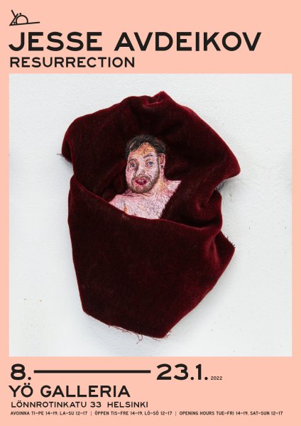 Jesse Avdeikov (s. 1986) on maalauksen, kirjonnan, kirjoittamisen, animaation ja installaation keinoin työskentelevä kuvataiteilija. Työskentelyn lähtökohdat ovat omaelämänkerrallisia ja tarinat ovat hänelle tärkeitä. Hän käsittelee taiteessaan muun muassa ystävyyttä, erilaisia tapoja elää, nautiskelun tärkeyttä, yksinäisyyttä sekä syntymää ja kuolemaa. Hän inspiroituu YouTube-videoista, klassisesta maalaustaiteesta, koirista, surullisten asioiden ajattelusta ja elämän absurdeista aspekteista. Avdeikov valmistui Kuvataiteen maisteriksi Taideyliopiston Kuvataideakatemiasta kesäkuussa 2020.